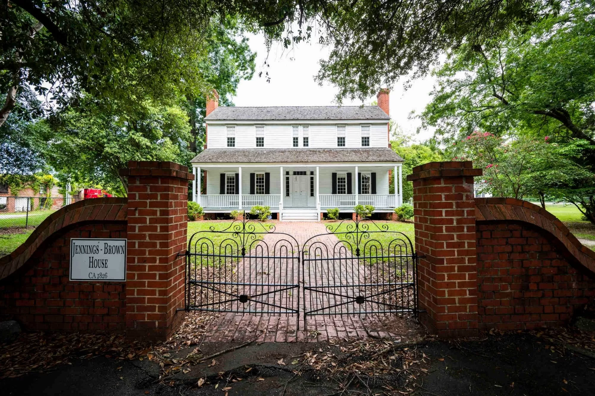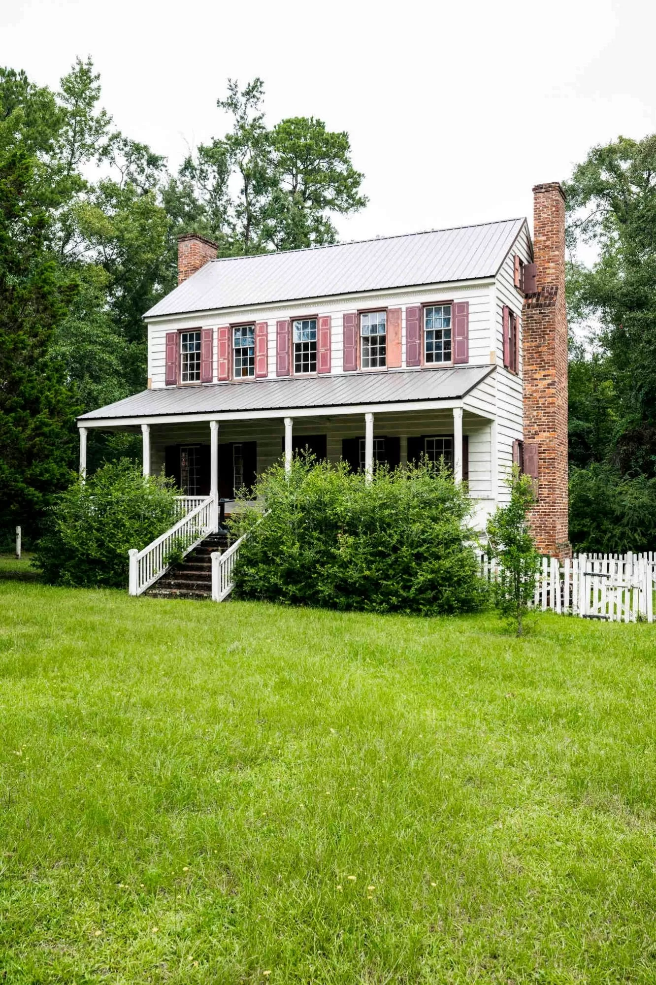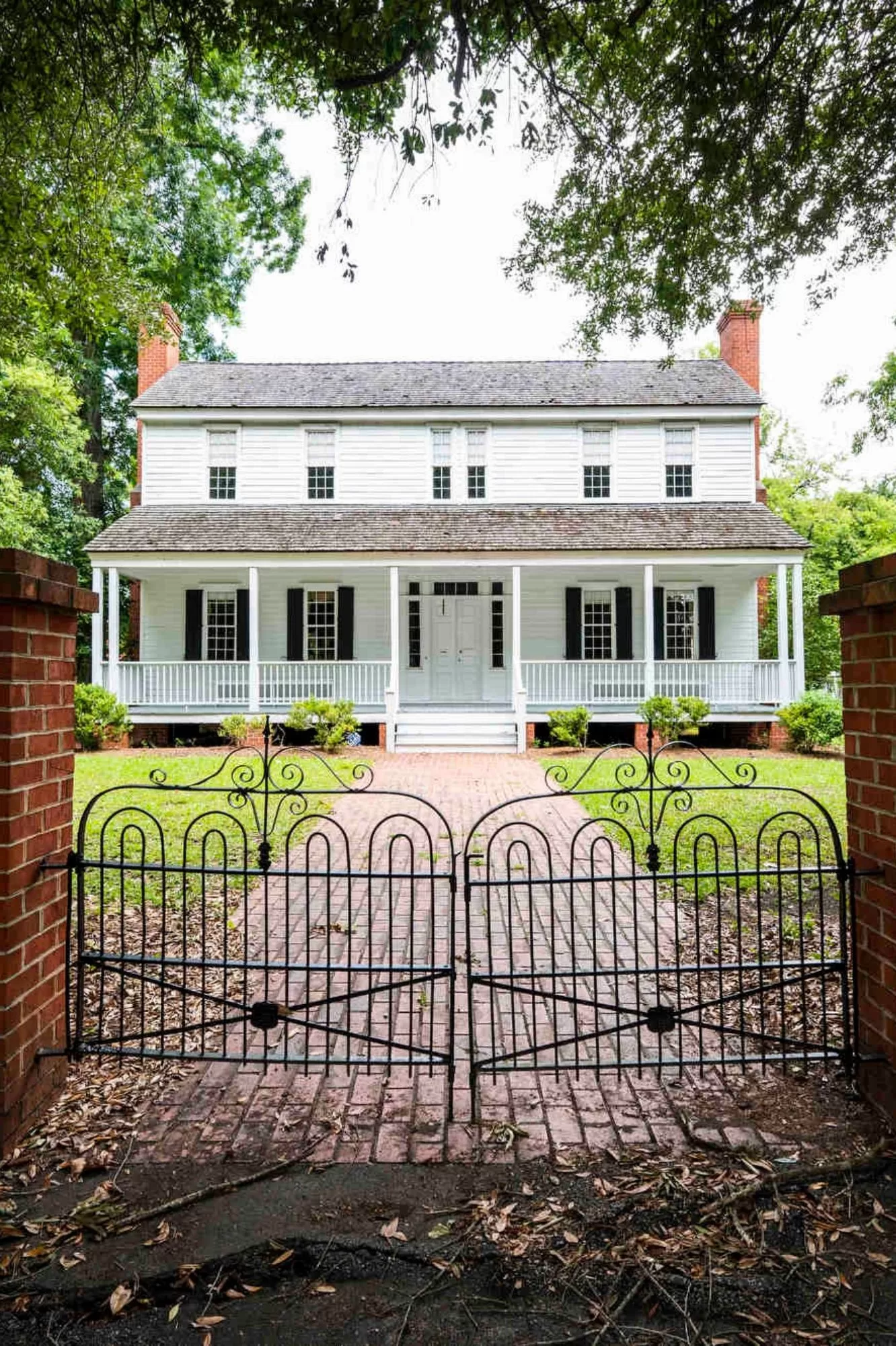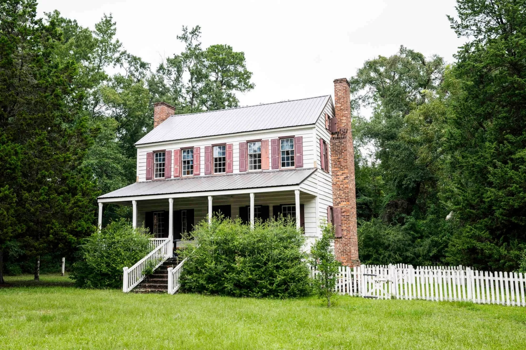 In 1748, James Witherspoon built a large family home called Thorntree after immigrating to Williamsburg Township. The Plantation Style house, later called an I-house because of its popularity in Indiana, Illinois, and Iowa, is a two-story house with a covered front porch and a central passageway separating rooms with chimneys on either end.