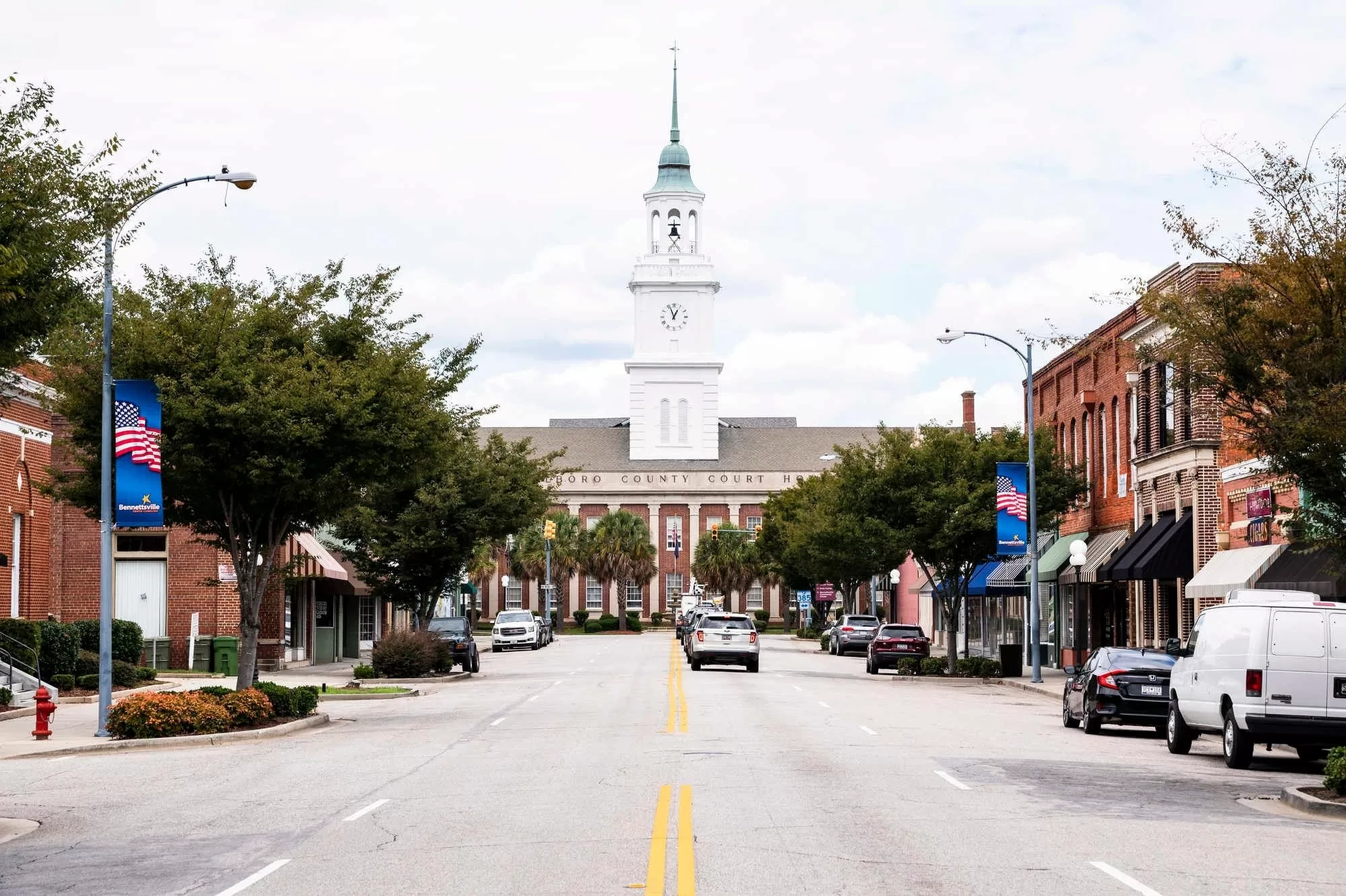 Bennettsville is a twenty-minute drive from Florence along a scenic highway through the countryside. Founded in 1819, the town was a center of commerce for cotton plantations and tobacco farms. Broad Street ends at Main Street in front of the 1884 courthouse, the most impressive structure in town.