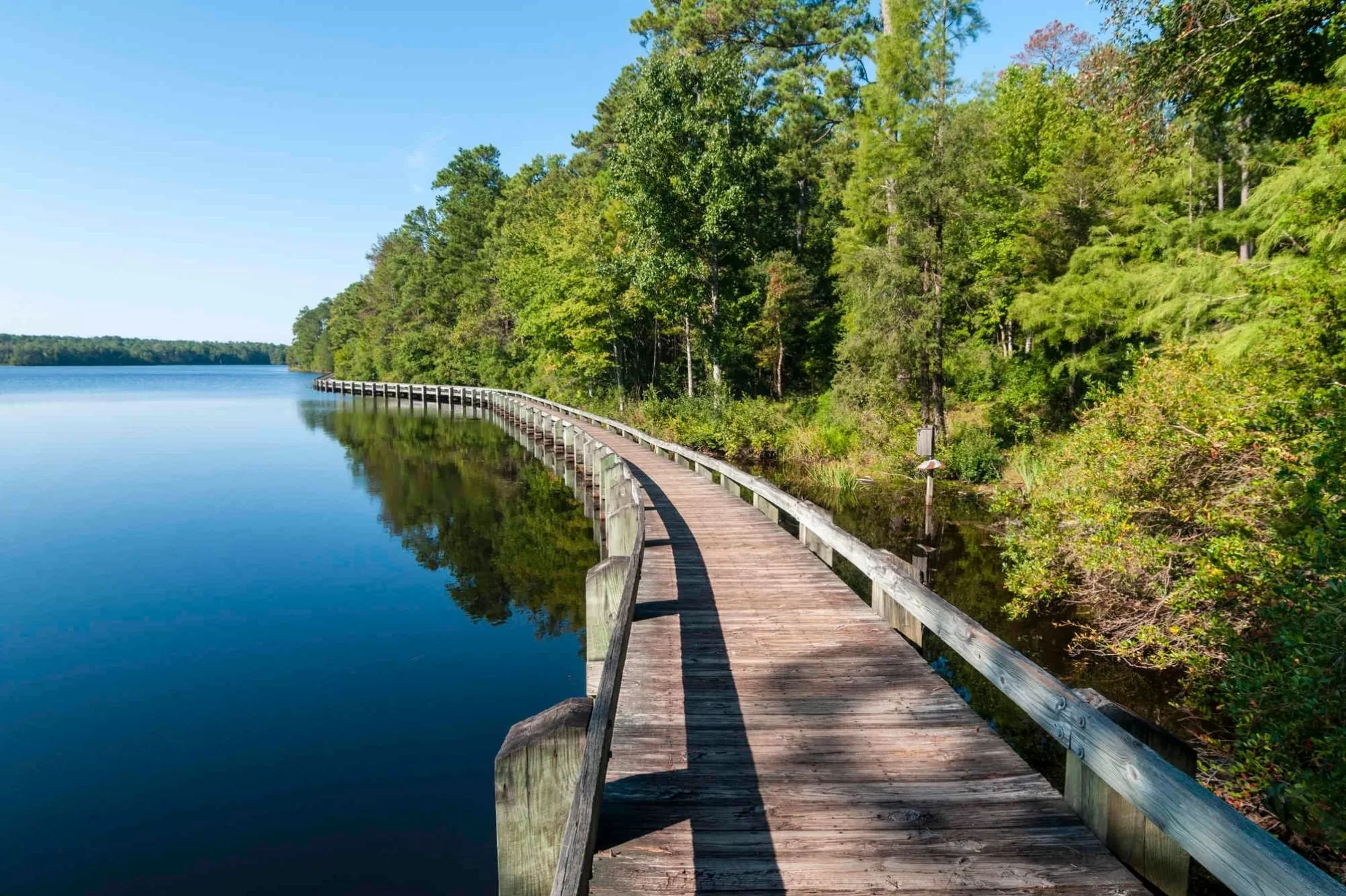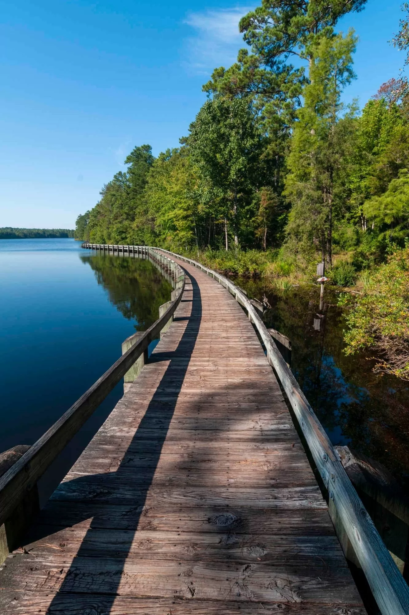 But the central feature of the secluded park is the 300-acre artificial Lake Juniper. Built by the Civilian Conservation Corps in the 1930s, the lake is an excellent place for fishing and kayaking. The 1-mile Lake Juniper Boardwalk (bookmark on AllTrails) is a spectacular place for a walk between the beach and the dam.
