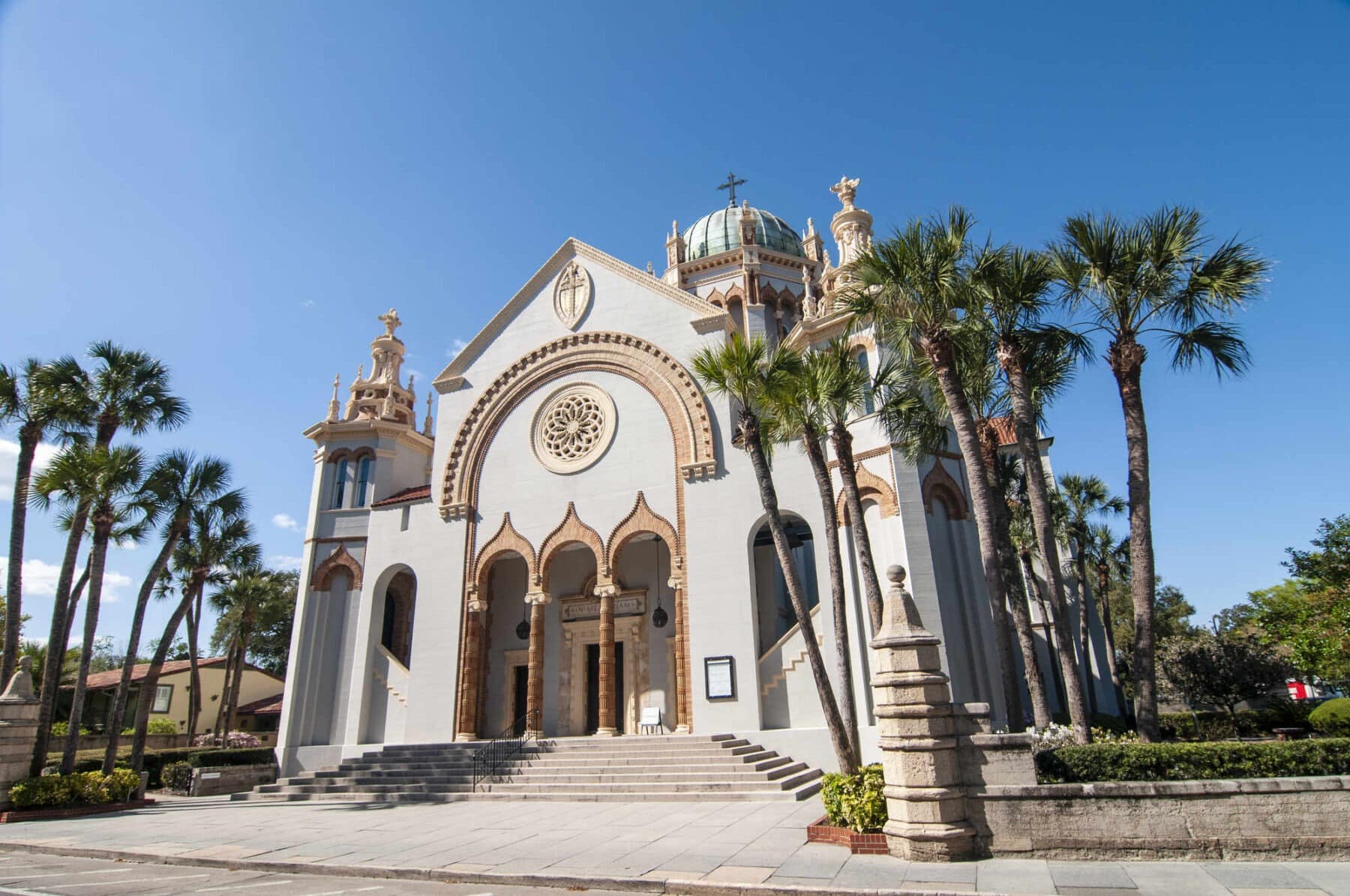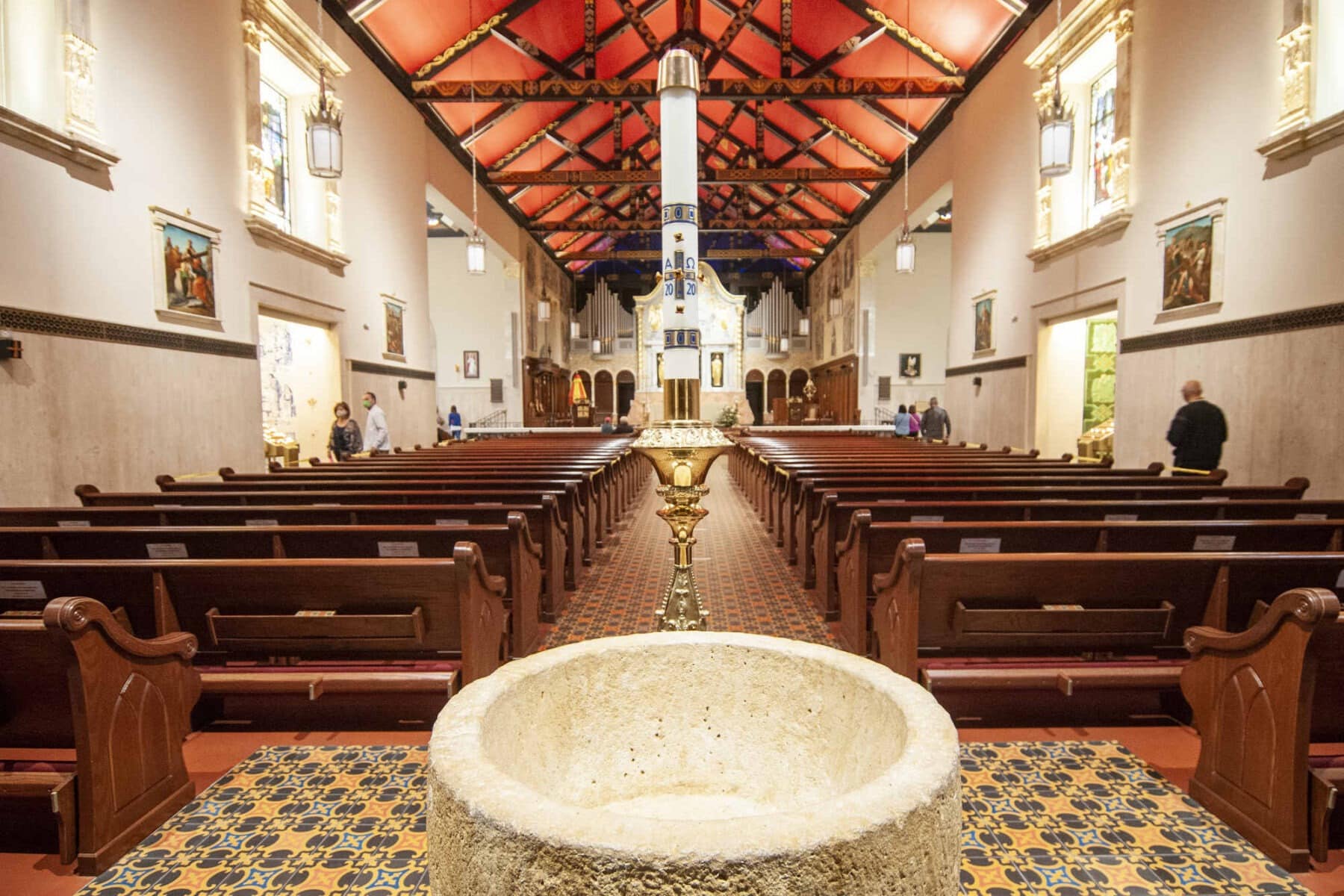 There are so many stunning churches to visit in St. Augustine – three days was just not enough time to visit them all. Above, the Memorial Presbyterian Church featured stunning architecture while surrounded by towering palm trees. Below, the Cathedral Basilica of St. Augustine featured a simpler type of stunning architecture inside the vast church.