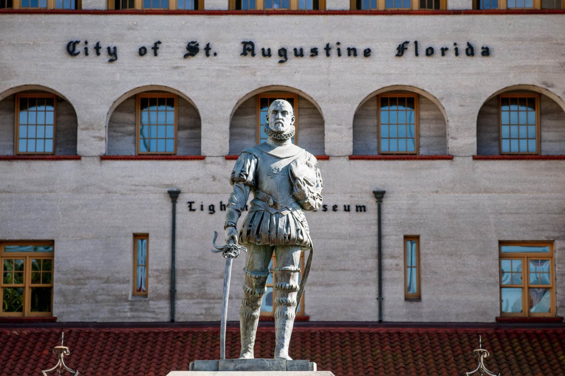 Pedro Hernandez de Aviles. Local school children learn about the founder of St. Augustine – the oldest city in America. This towering statue is located in front of City Hall in a small park. And we’re off exploring St. Augustine.