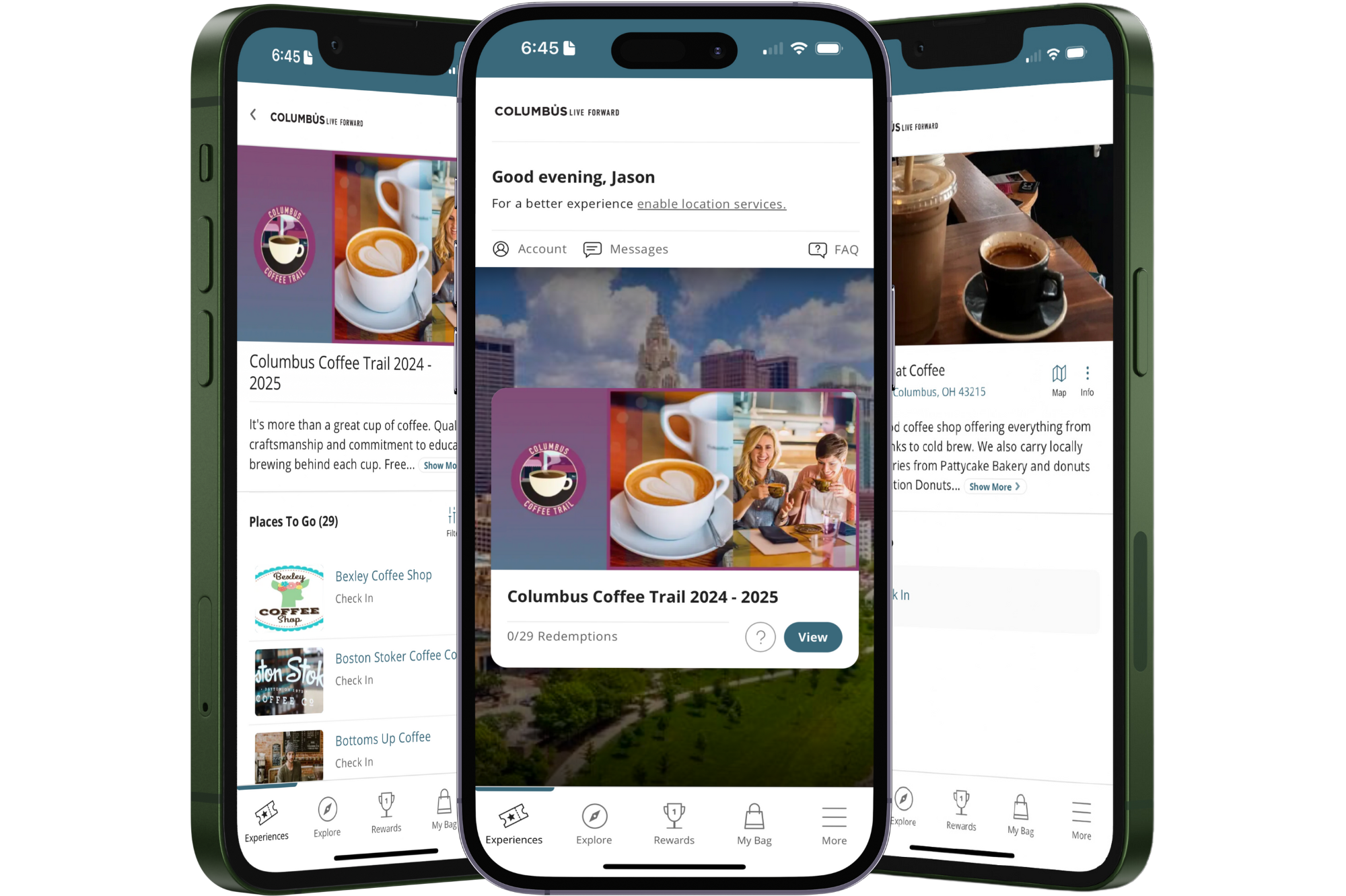 To begin your journey on the Columbus Coffee Trail, visit the Experience Columbus website and sign up to download the Columbus Coffee Trail app to your smartphone. You’ll receive an email with a link to a website to “download” the web-based app.