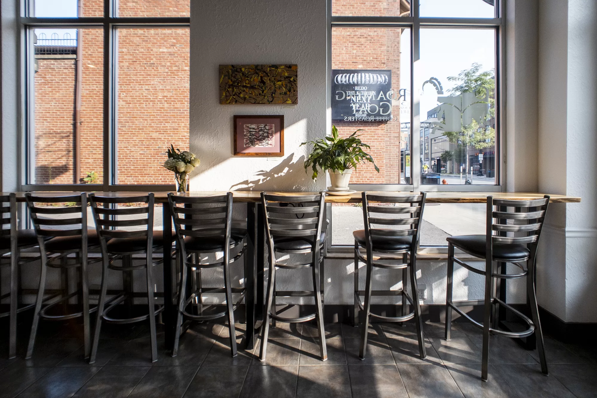 One Line Coffee’s Franklinton location is larger than its original Short North coffee shop. The 2,500-square-foot coffee shop is a gorgeous modern space with enormous picture windows flooding the place with natural light. Comfortable tables, chairs, and booths offer a great place to enjoy savory coffee and food.