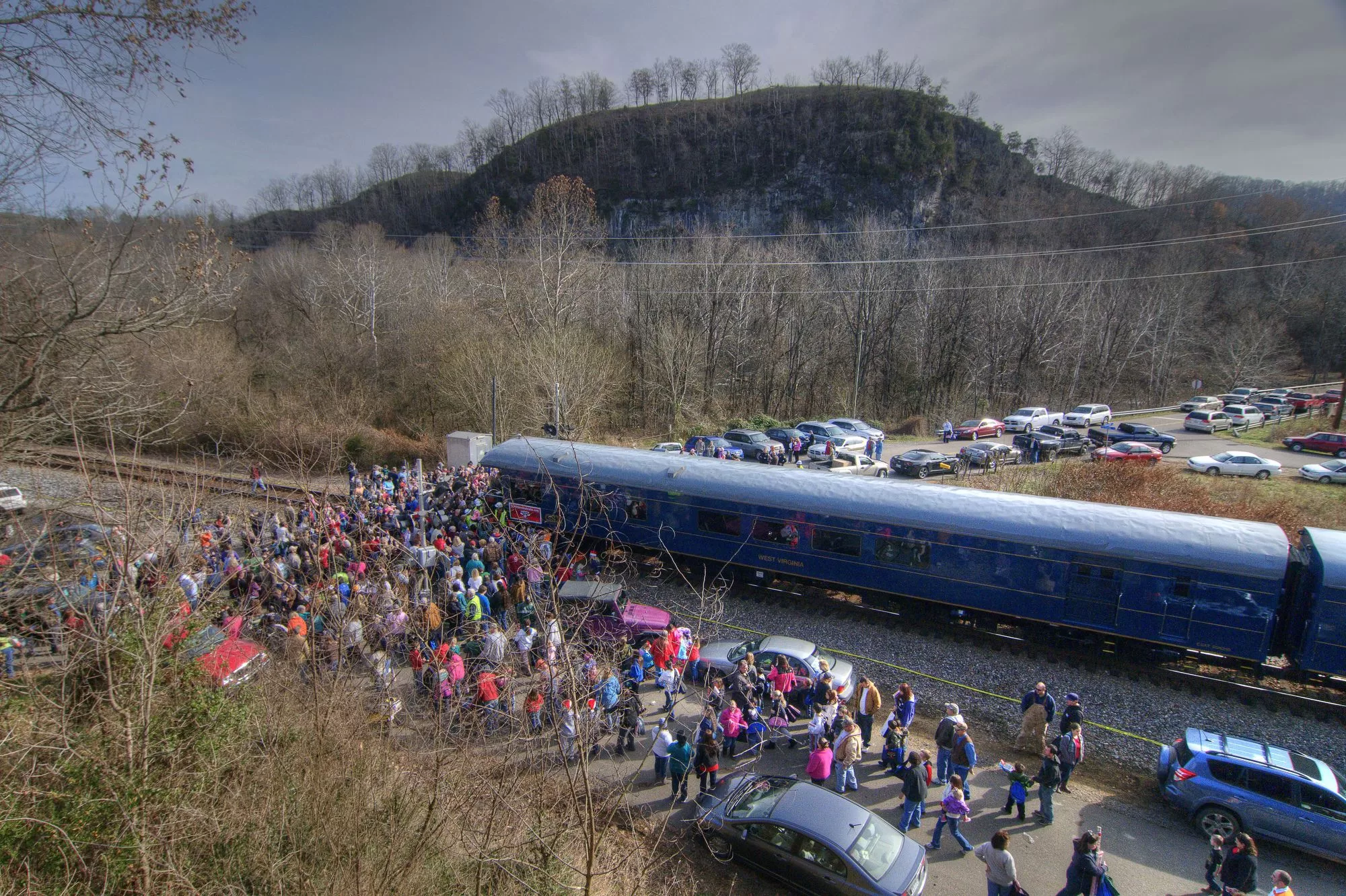 The CSX Santa Train travels a railroad section far from major highways through small Appalachia towns. Many stops are challenging to visit unless you live within a few miles.