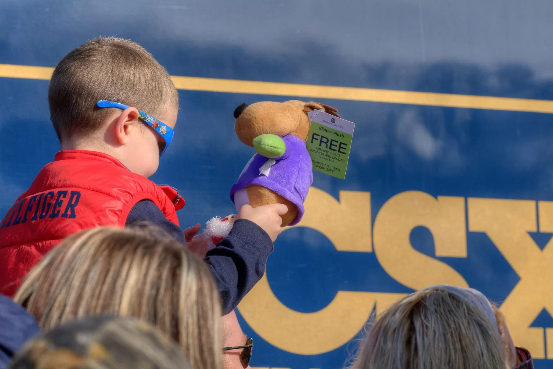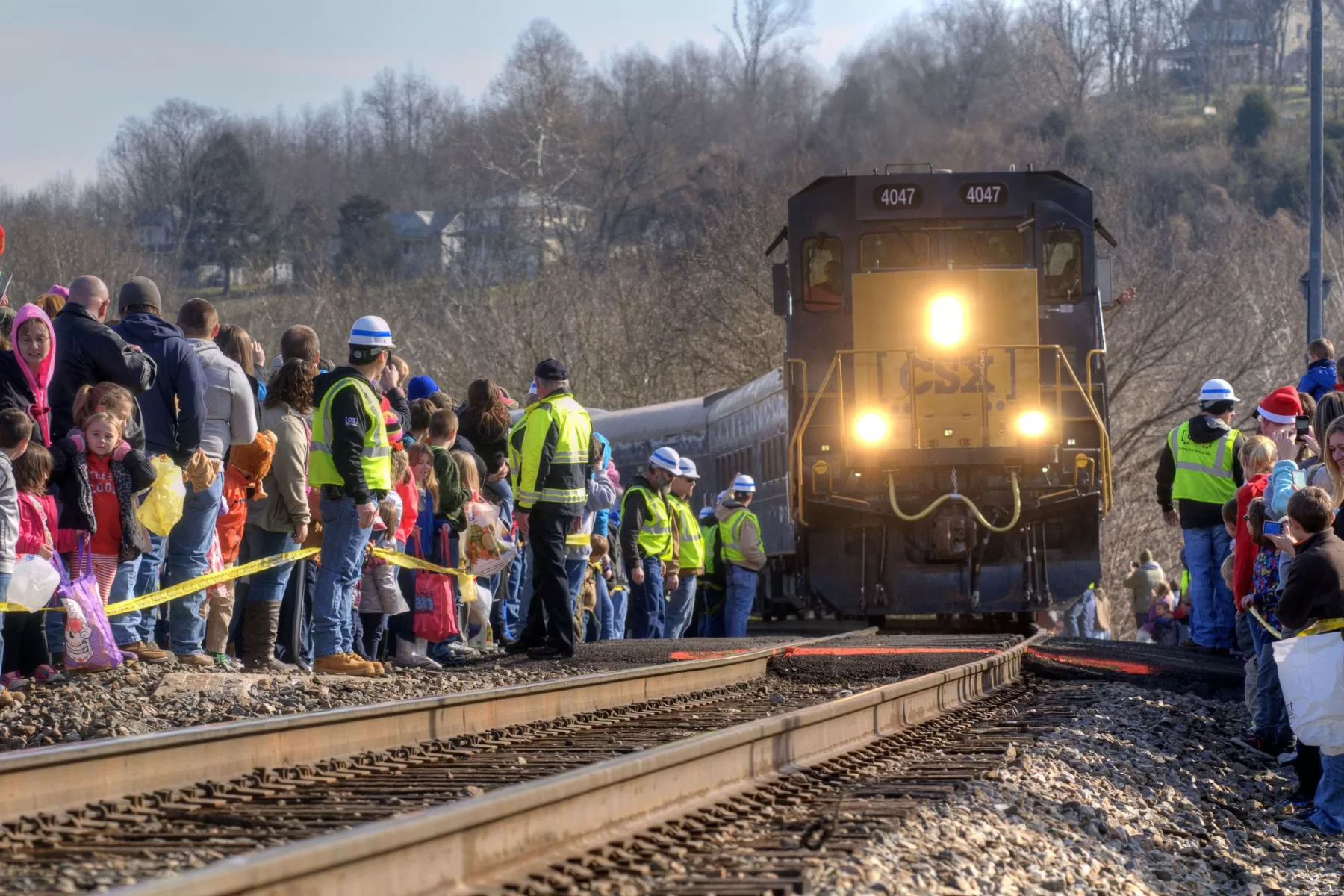 It’s easy to get wrapped up in the festive spirit and forget that the CSX Santa Train is a big piece of machinery trudging along railroad tracks. CSX employees and local police spare no effort to make it a safe experience. But you still need to look before you cross!