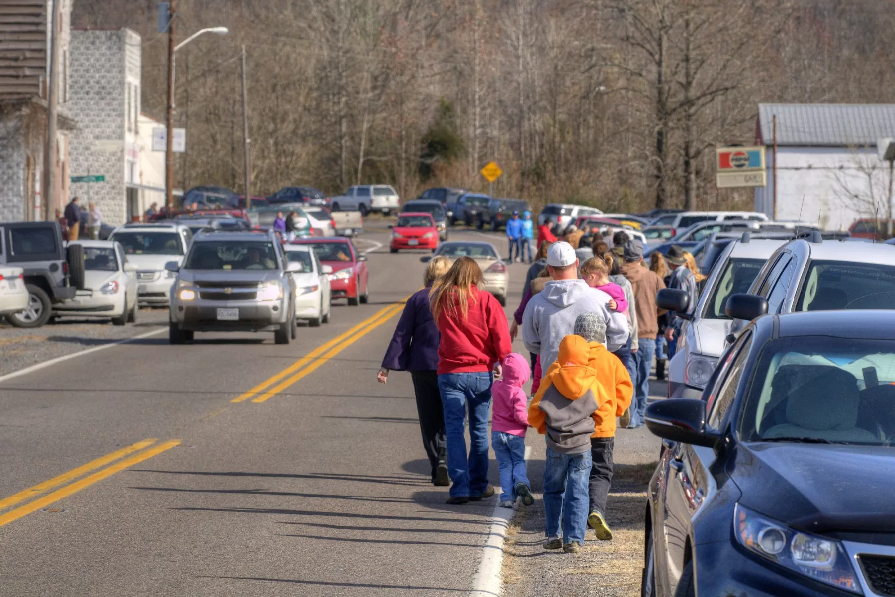 The CSX Santa Train stops near a sharp bend in the road near the middle of the unincorporated town. The best place to park is nearby Dungannon Elementary School – it’s about a five-minute walk from there. Interestingly, you can stand on a bridge where Sinking Creek Highway crosses the railroad and watch the Santa Train pass beneath.