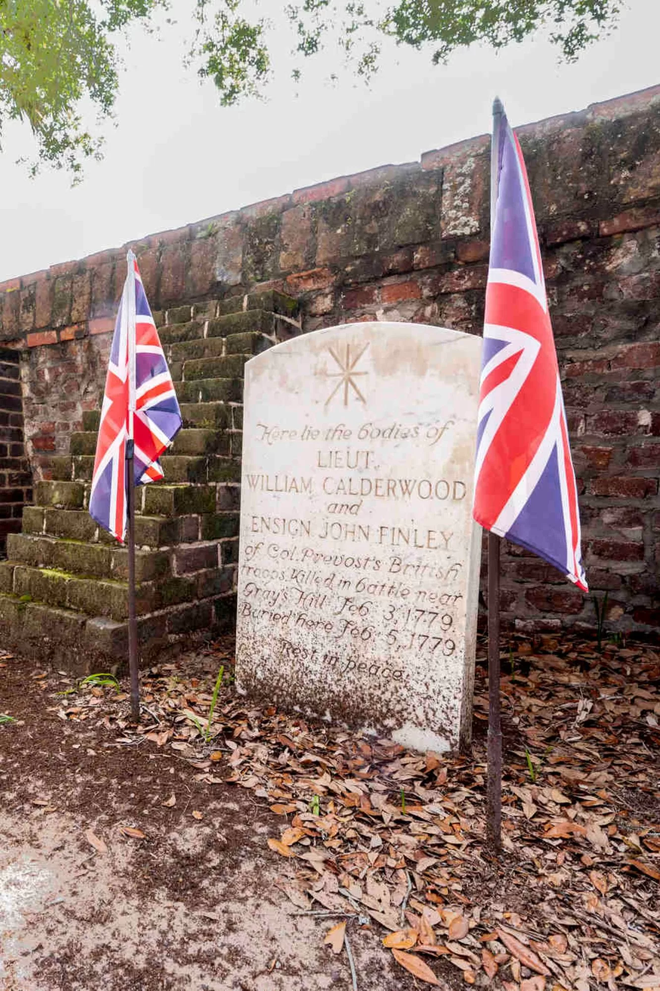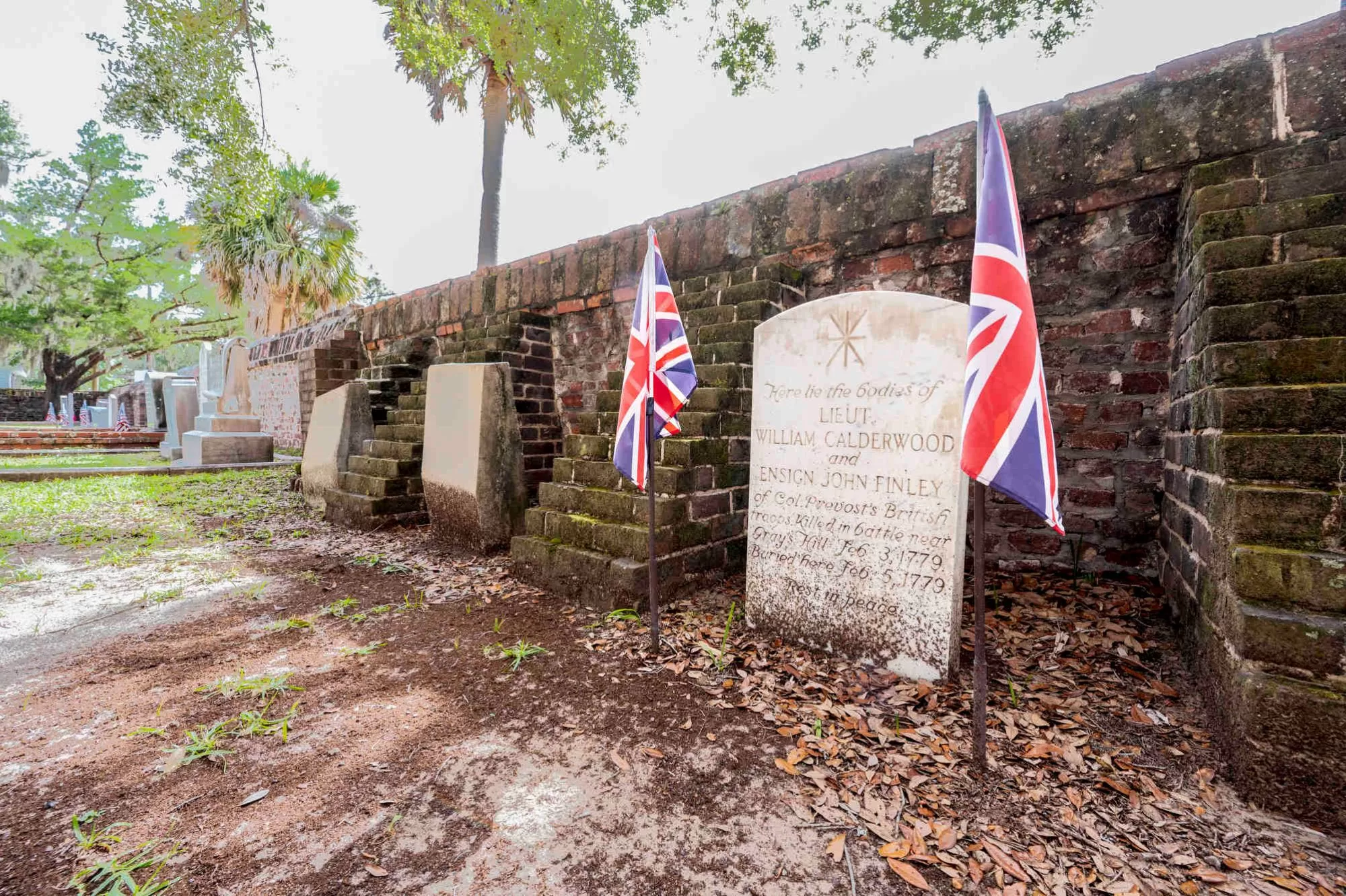 But the most intriguing gravesite is the dual burial plot of British soldiers. Lieutenant William Calderwood and Ensign John Finley were killed at the Battle of Port Royal in 1779. It’s a rare example of British soldiers buried at a colonial church.