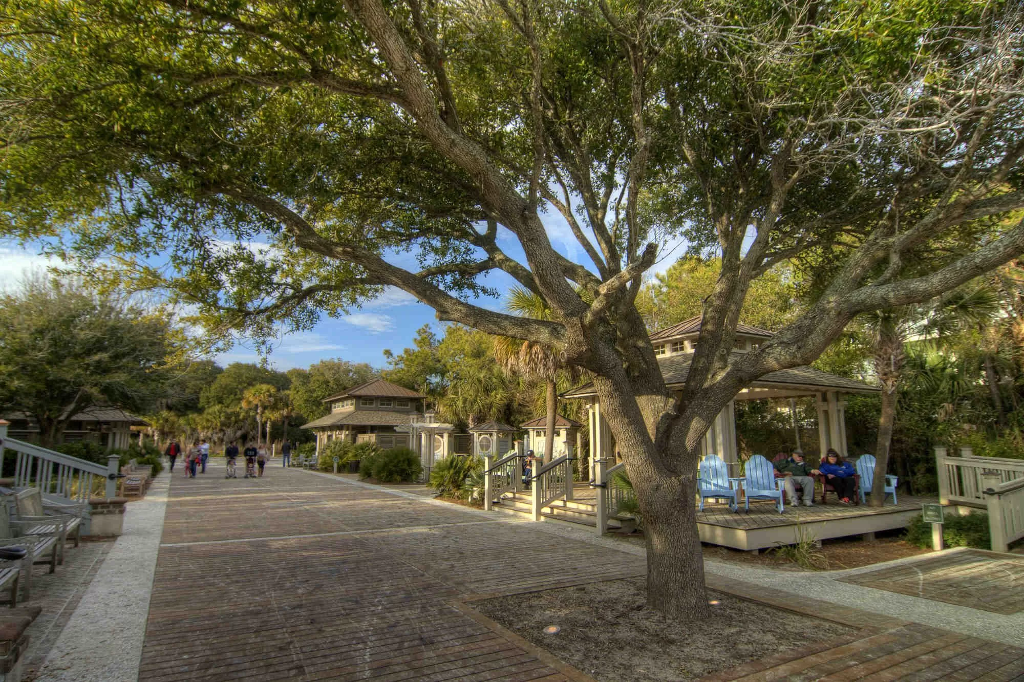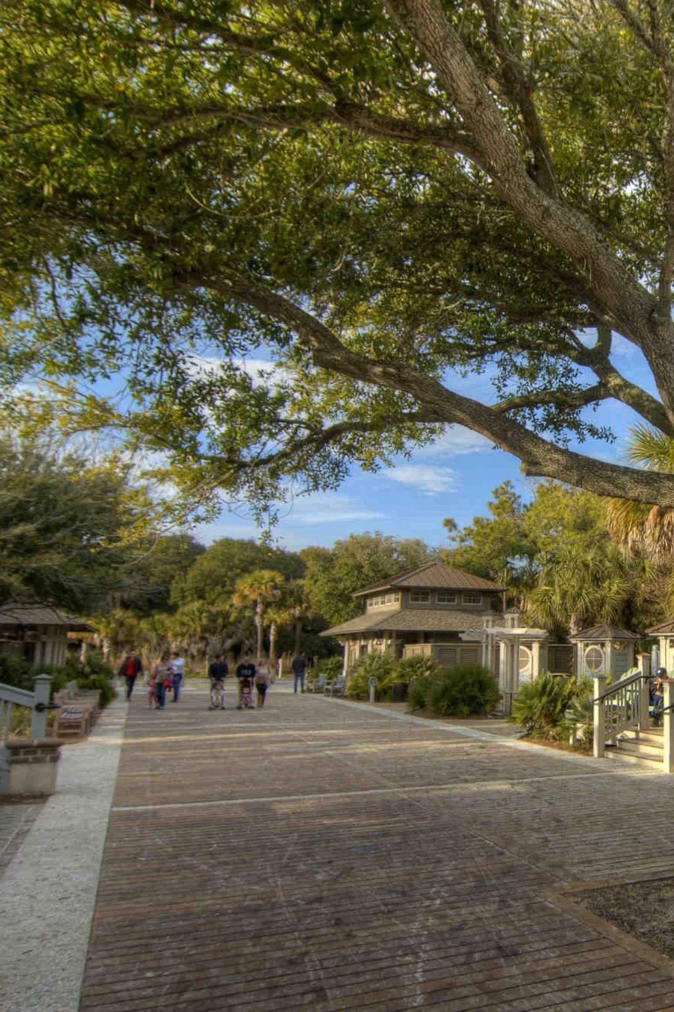Coligny Beach Park is the best place for day trippers to hit the beach on Hilton Head Island. A boardwalk with an accessible mat leads to the wide beach. The public beach access features public restrooms, changing rooms, and showers.
