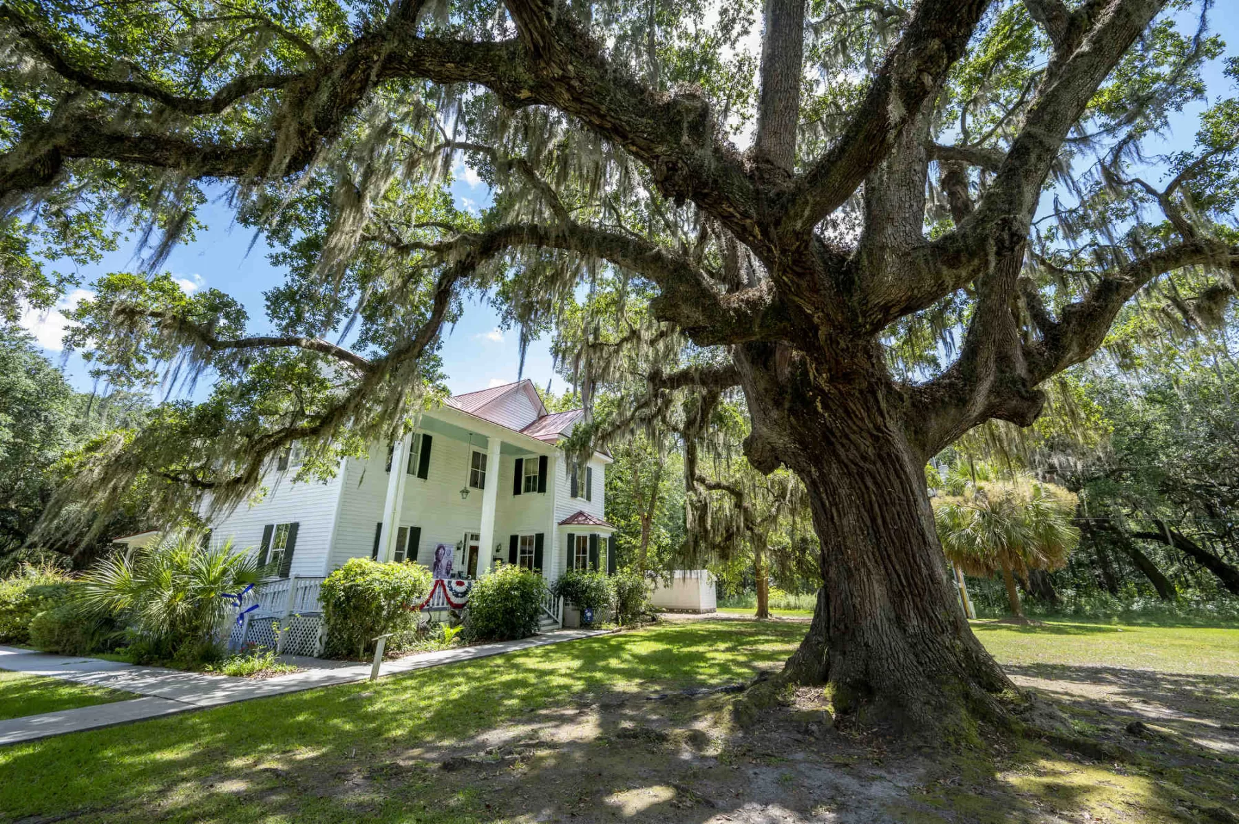 In 1993, the house was donated to the Lowcountry Tourism Commission for use as a visitor center. It’s a unique visitor center experience – you drive through a white gate along a curvy road toward a two-story house shaded by giant oak trees.