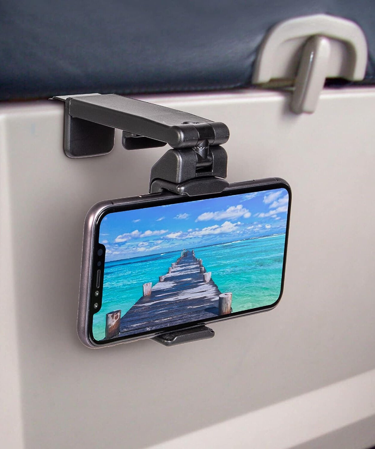 Taking off on a long flight? Clamp your smartphone into a comfortable viewing position to watch a movie or the latest episode of your favorite show.