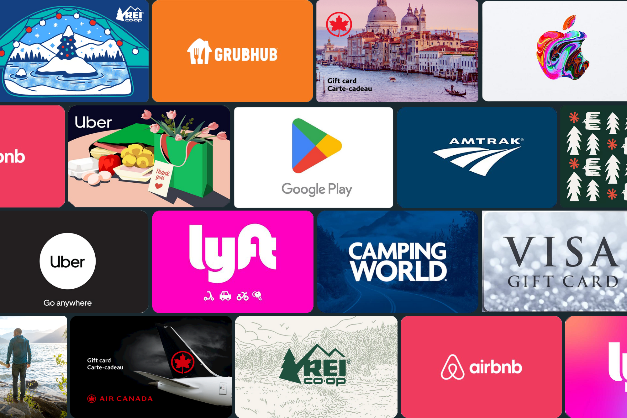 The boundless options include airlines, Amtrak, Lyft, and Uber. There are a few lodging gift cards. The most versatile are gift cards from Visa and Mastercard that can be used around the world.