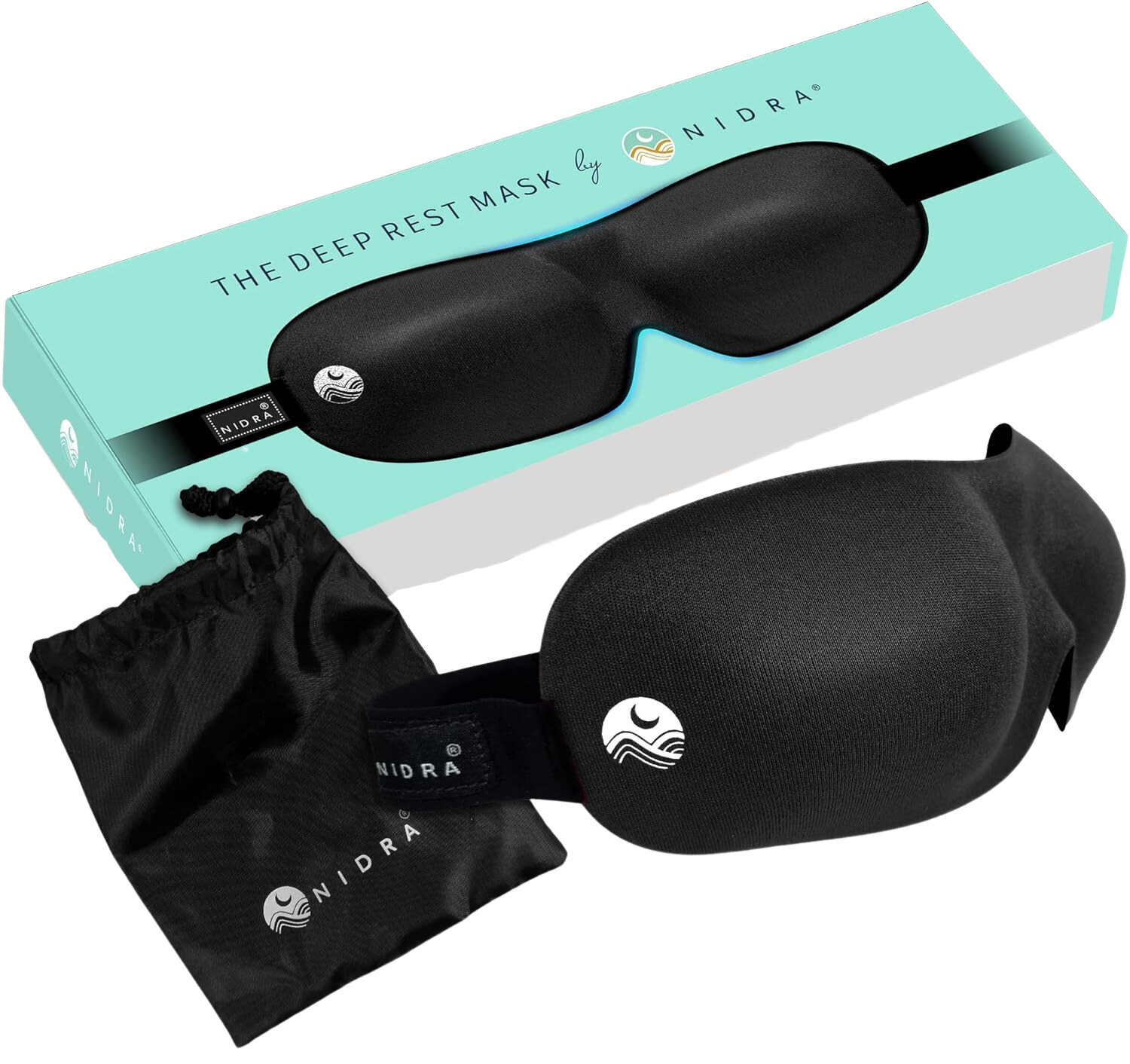 If you find sleeping around bright lights on an airplane or street lights shining through a hotel’s curtains challenging, you might want to get a Nidra Sleep Mask. The mask is contoured to fit snugly around your eyes and across your nose. The most interesting feature is the molded eye cups that don’t press against your eyelids.