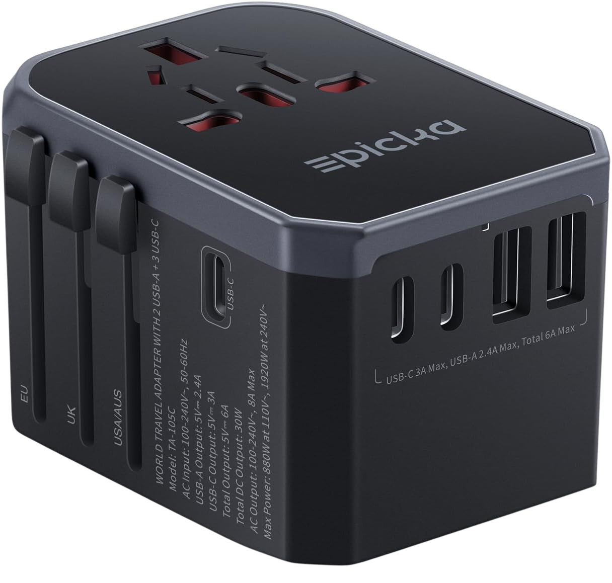 One of the most frustrating aspects of most universal travel adapters is keeping up with many adapters in a separate bag. But the Epicka Universal Travel Adapter ditches the bag of adapters by putting everything into a single unit.