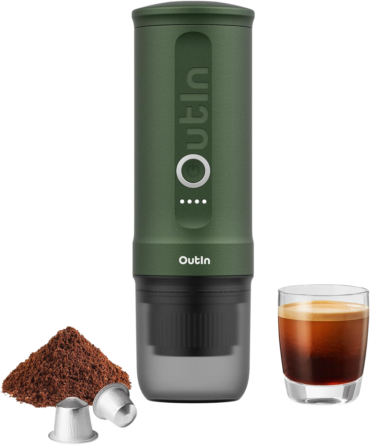The OuttIn Nano is an all-in-one design that makes it easy to pack for travel. An advantage of the OutIn espresso machine is the option to use capsules from popular brands like Nespresso. However, you can still grind coffee beans for a shot.