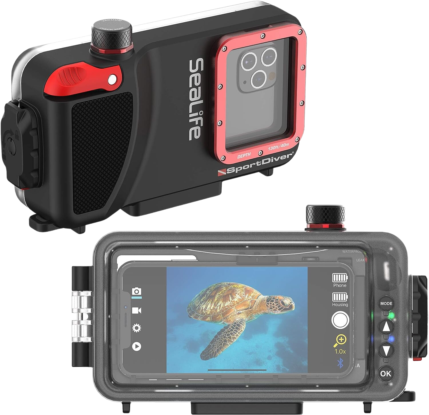 Powered by AAA batteries, the case connects to an app via Bluetooth and allows you to fine-tune your camera settings while the phone is secured inside the case. The case is adjustable, fitting most modern smartphones. An anti-fog device keeps you shooting for hours underwater, and sensors will alert you if the smallest amounts of water leak inside the case.