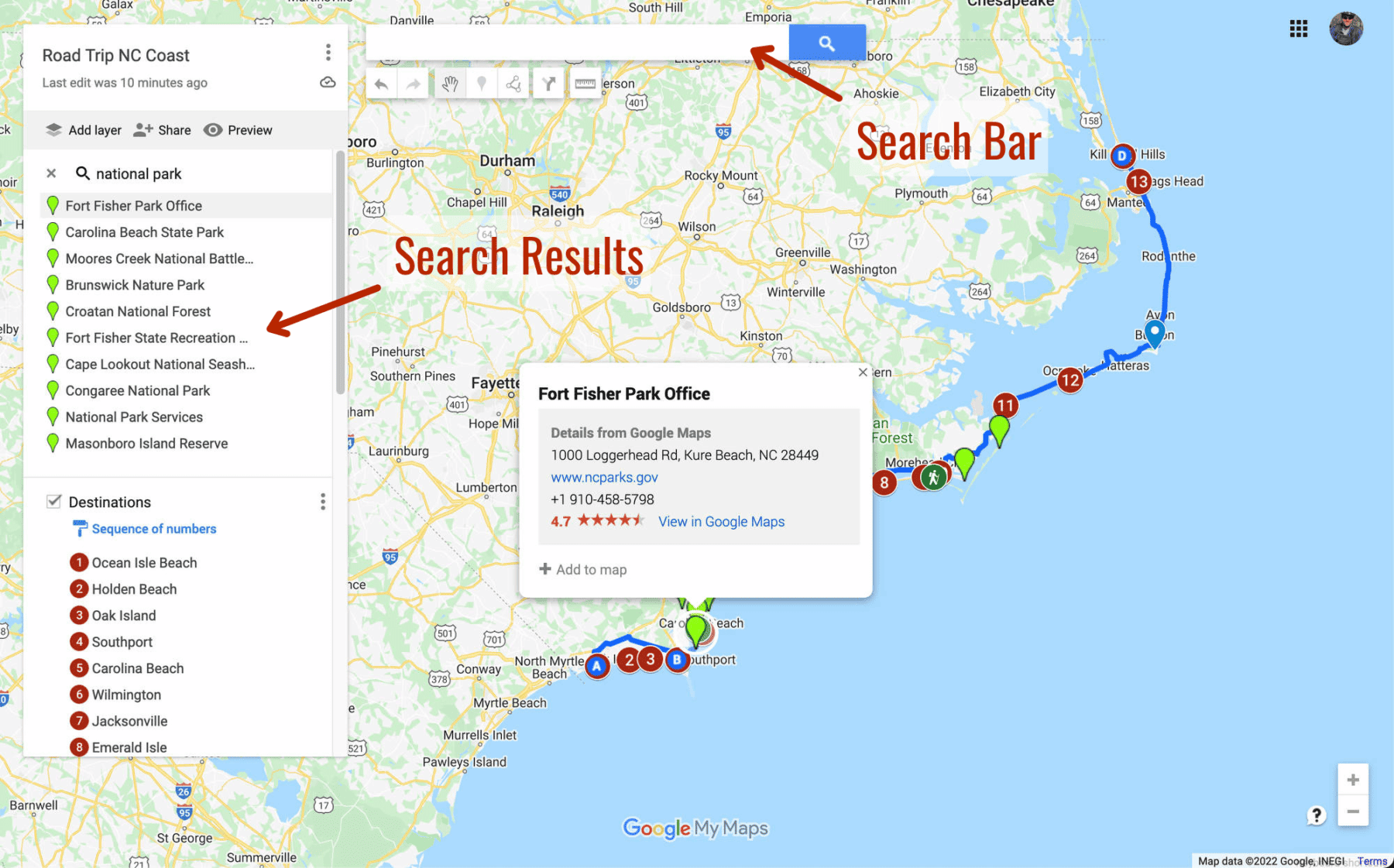 For now, here is an example to help you with this tutorial: Road Trip to the Southern Sixers at Google My Maps.