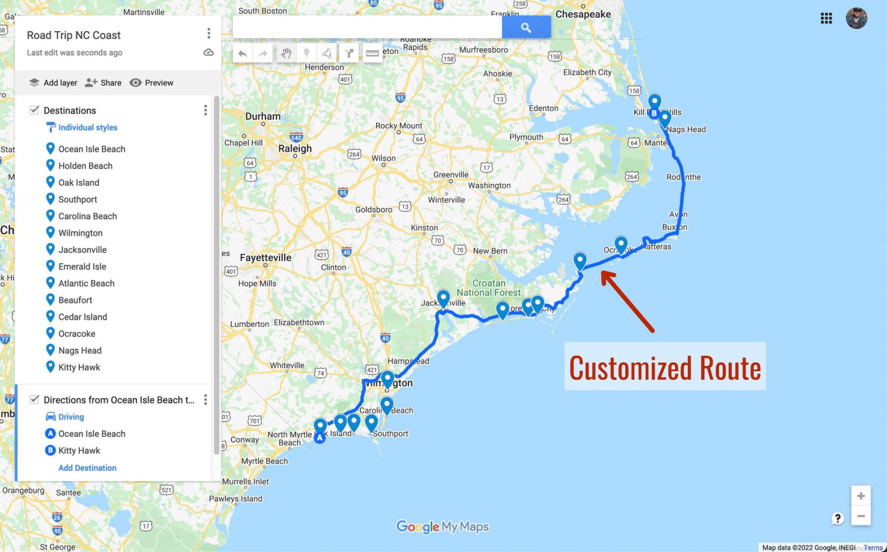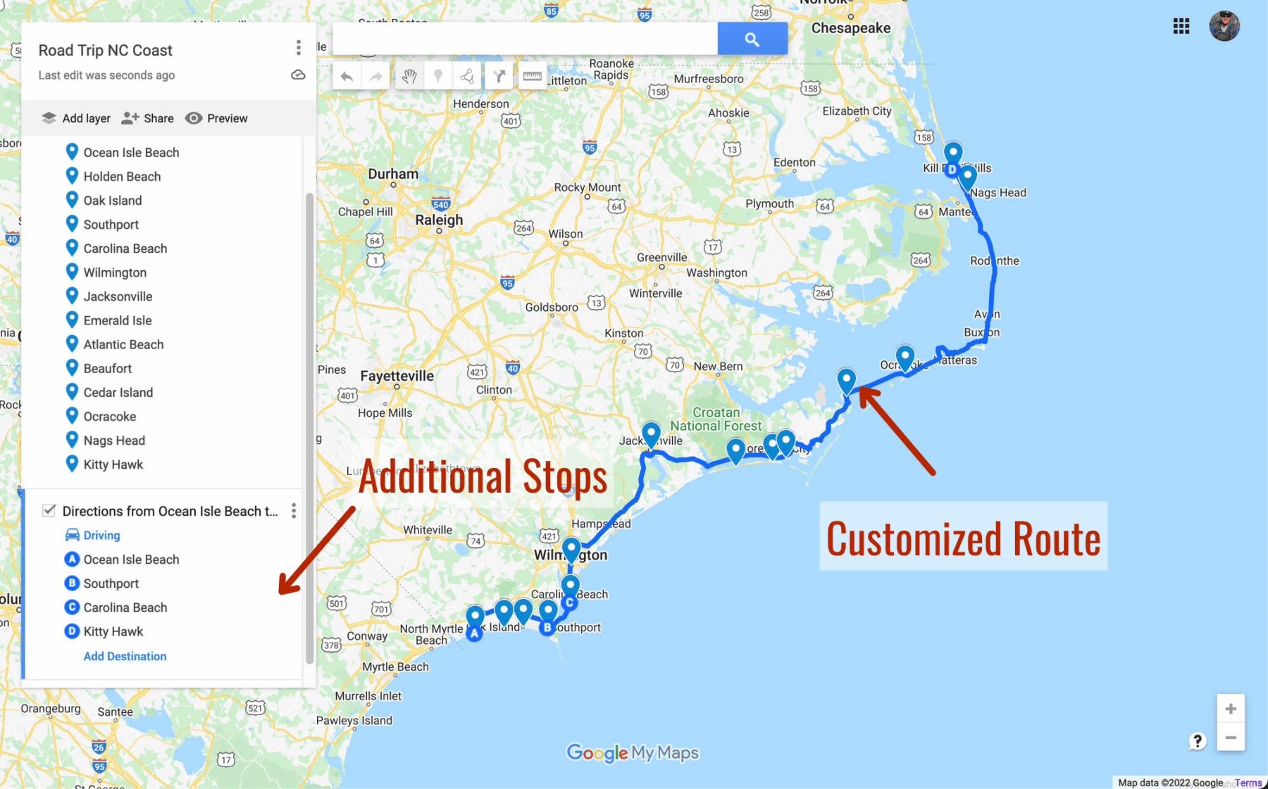 All of this is made possible with Google My Maps – a component of Google Maps that allows users to create customized maps. After years of road tripping, I have built an archive of over a hundred custom maps. It’s great for planning a road trip – and remembering my favorite moments years later.